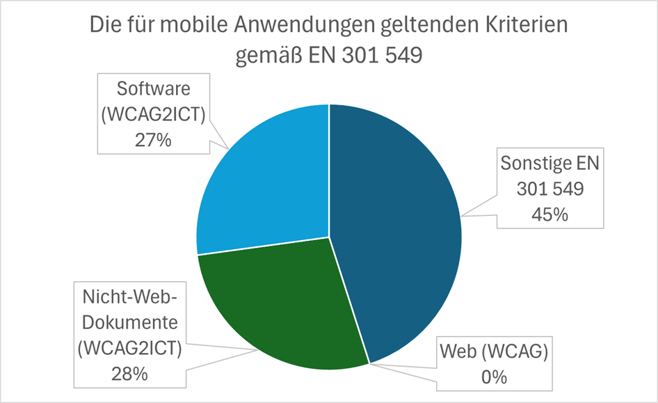 Apps unterliegen den „Software”-Kriterien in Kapitel 11 der Norm, die auf WCAG2ICT basieren und 27 % der für mobile Apps geltenden Kriterien ausmachen.